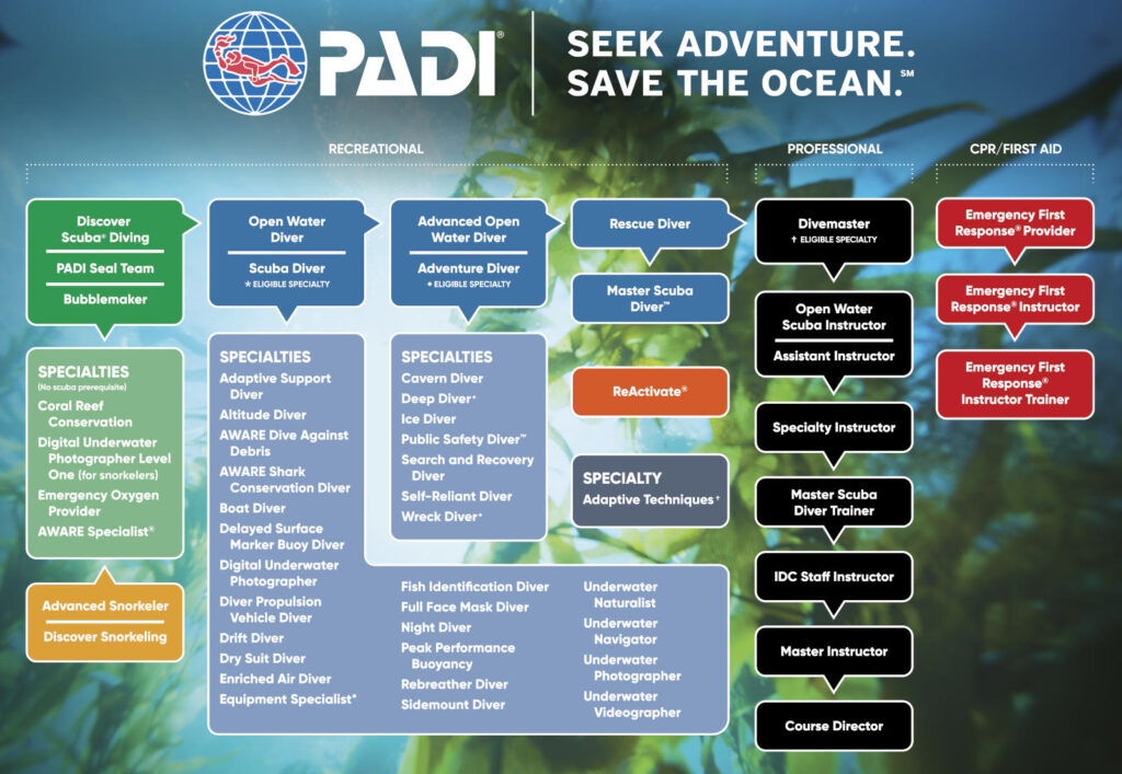 Both SDI and PADI gives you the opportunity to complete all of the academic requirements for your entry-level scuba diver certification online through e-learning program. You can get started right now. When you’re done with the theory, you will then complete your in-water skill-development sessions and final open-water training dives.